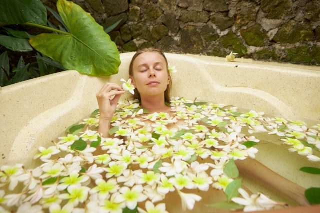 身体の汚れや、老廃物などを取り除き皮膚が清潔になります。老廃物が溜まっていると毛穴が大きくなり目立つこともあるので、お風呂に浸かることをおすすめします。