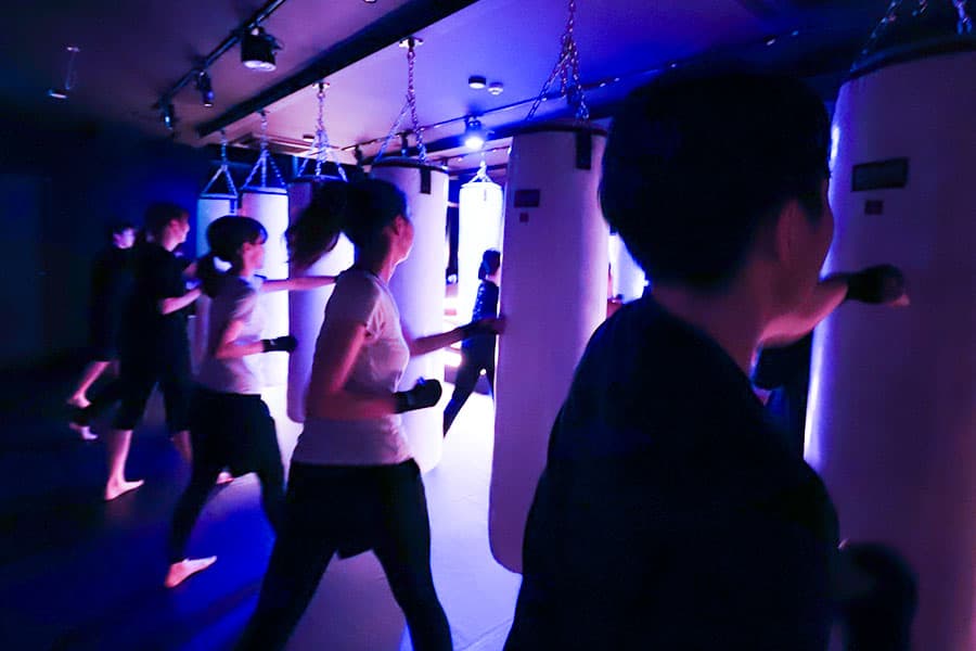 暗闇ボクシングフィットネスのレッスン、スタジオ内清掃